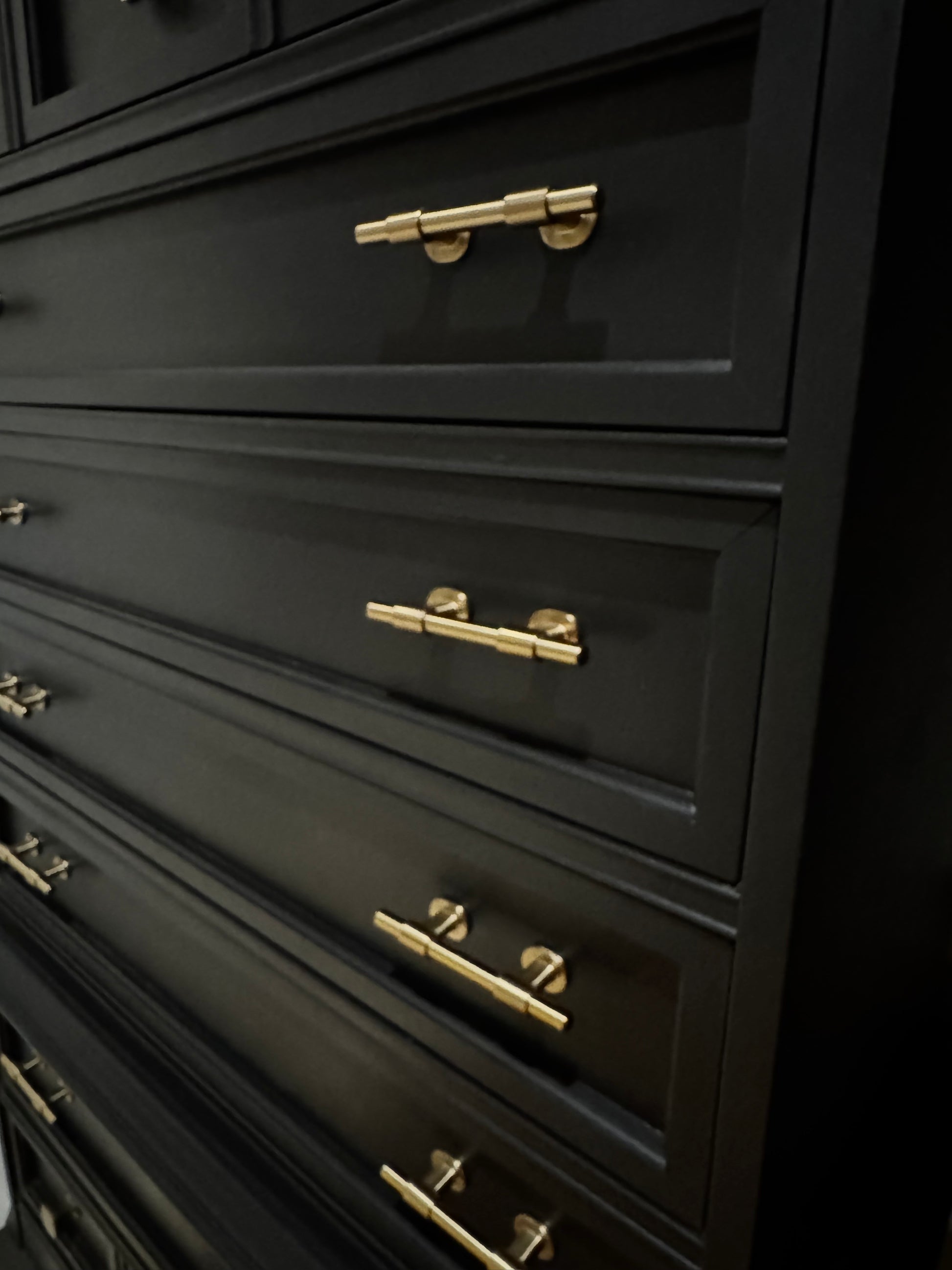Where timeless craftsmanship meets modern character. This Bassett highboy has been refinished in a deep black — giving new life to a classic silhouette.