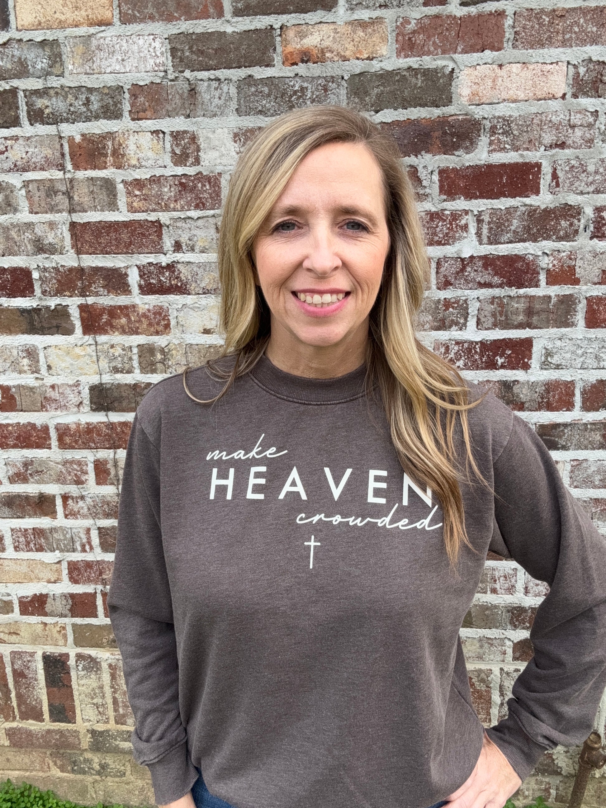 Designed for comfort and purpose, the “Make Heaven Crowded” sweatshirt blends effortless style with meaningful intention. Featuring clean lettering on a soft neutral fabric, it’s the perfect layer for casual days, coffee runs, church, or wearing your faith through everyday moments.