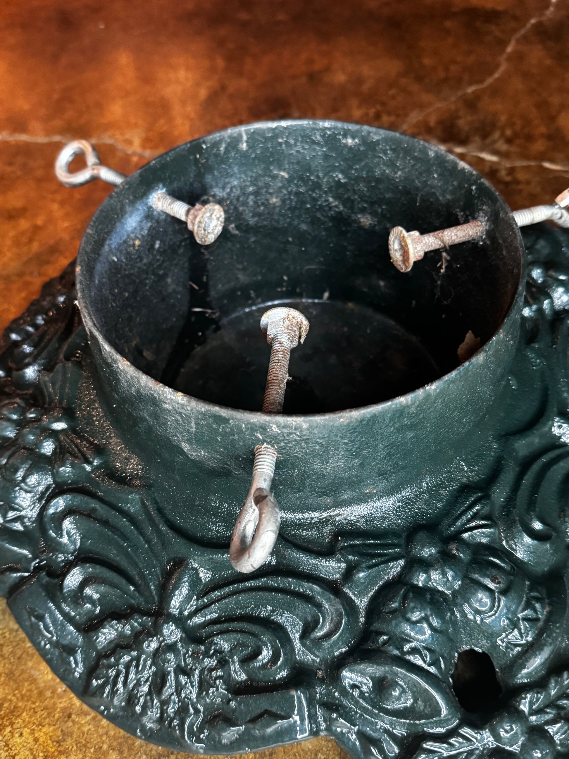 This vintage cast iron Christmas tree stand is one of those rare finds that carries both beauty and history. In its original classic green and in excellent condition — no chips or cracks — it stands strong and stunning just as it is.