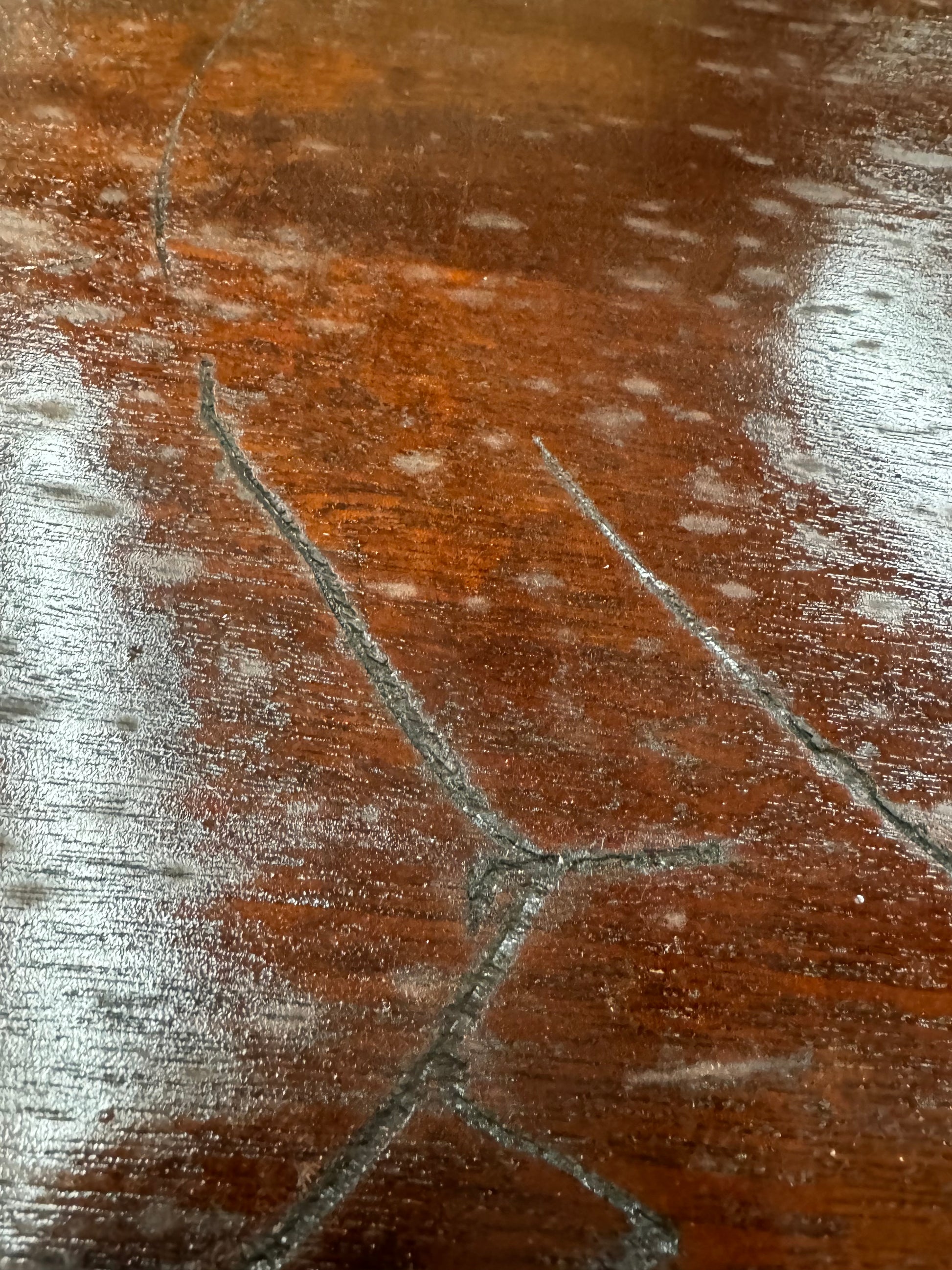 Yes — she carries small dings and dents, as expected for a piece of her age. They’ve been kept intentionally, because they’re part of her story.
